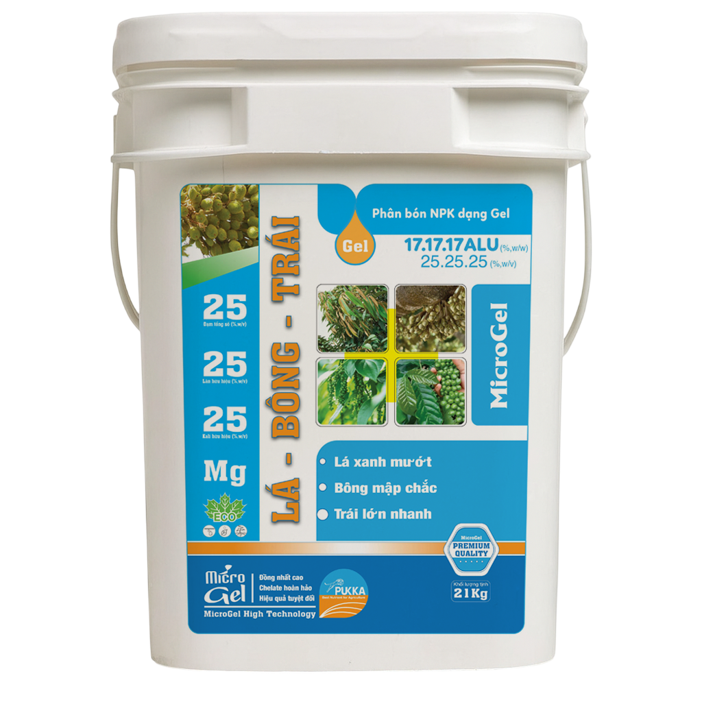 DƯỠNG LÁ – BÔNG – TRÁI (MicroGel NPK 25 – 25 – 25)_21 KG