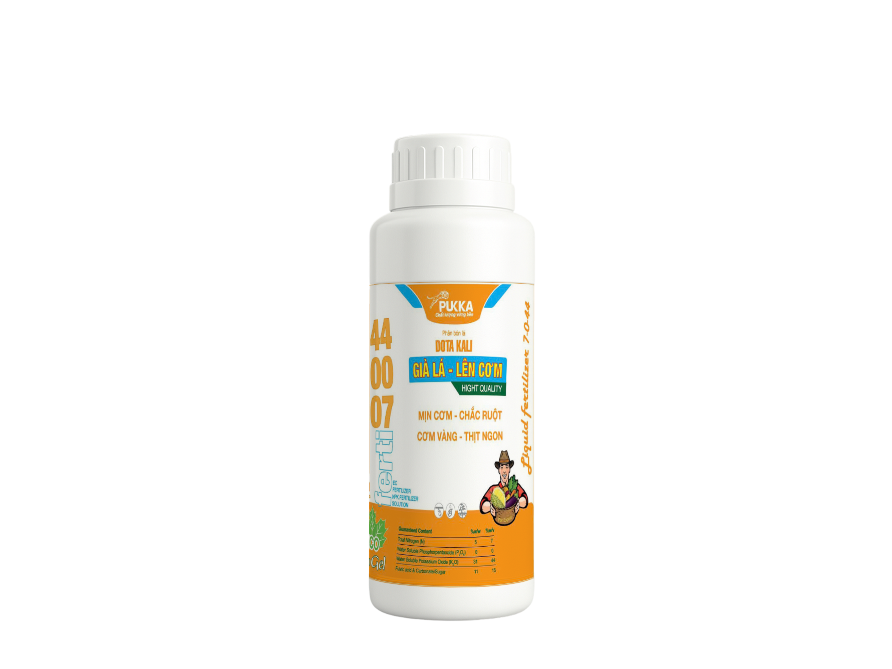 Đạm tổng số (Nts) 5%, Kali hữu hiệu (K2Ohh) 44% và các phụ gia.